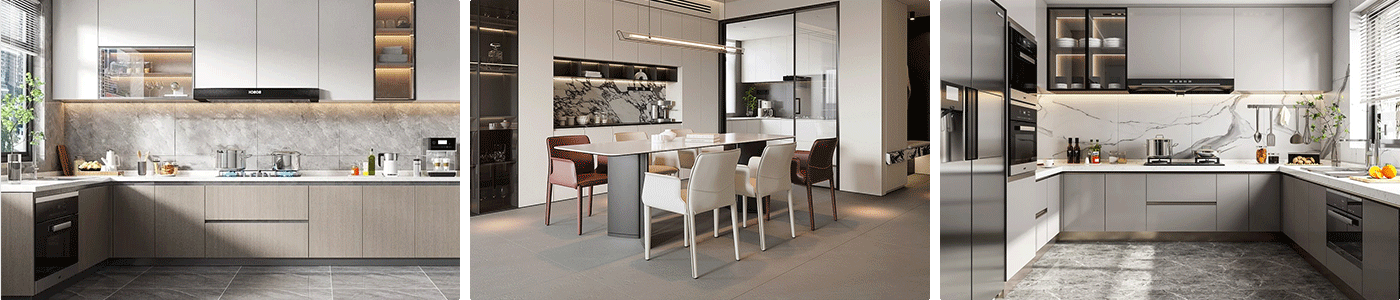 The so-called semi-open kitchen design refers to separating the kitchen and living room by non-traditional methods, such as using glass, sliding doors, half-height walls, low cabinets and center islands. A semi-open kitchen retains the open nature of an open kitchen while also avoiding the problems associated with some open kitchen designs. Therefore, more and more people prefer to use semi-open kitchen solutions.